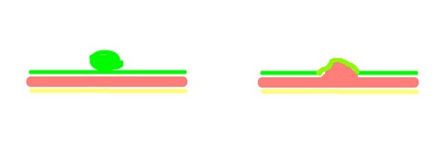 左为息肉模式图,右为粘膜下肿物模式图