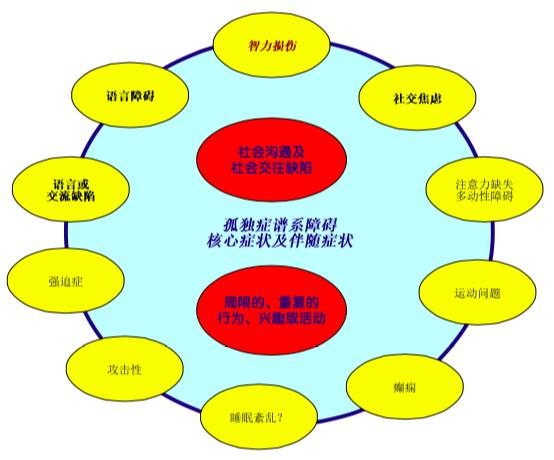 图 1: 孤独症谱系障碍核心症状及伴随症状