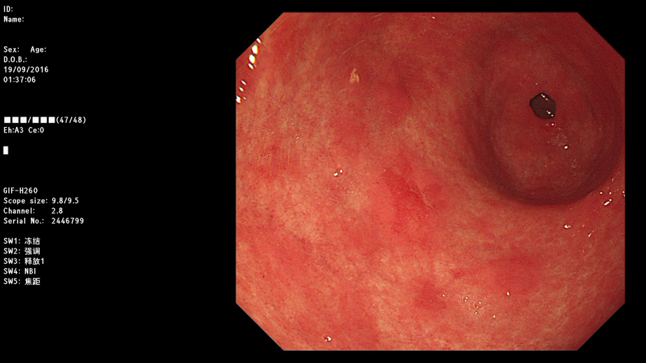 常规的胃镜所见(只是看到粘膜有些发红的斑片)