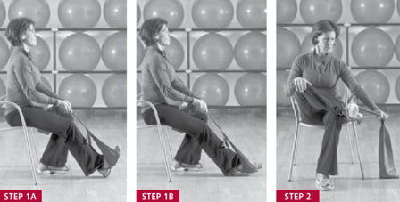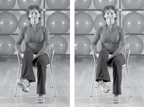 起始位置:坐在椅子上,上身挺直、双脚平放地面。