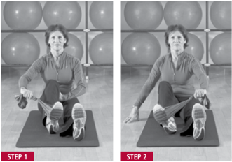 起始位置:双腿伸直坐在垫子上。